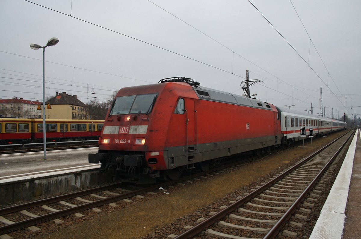 1001 007-6 wartet am Morgen des 12.2.2017 mit dem EN440 von Moskva Kurskaja in Berlin Lichtenberg auf Weiterfahrt ins Talgo-Werk Warschauer Straße. Alexander
