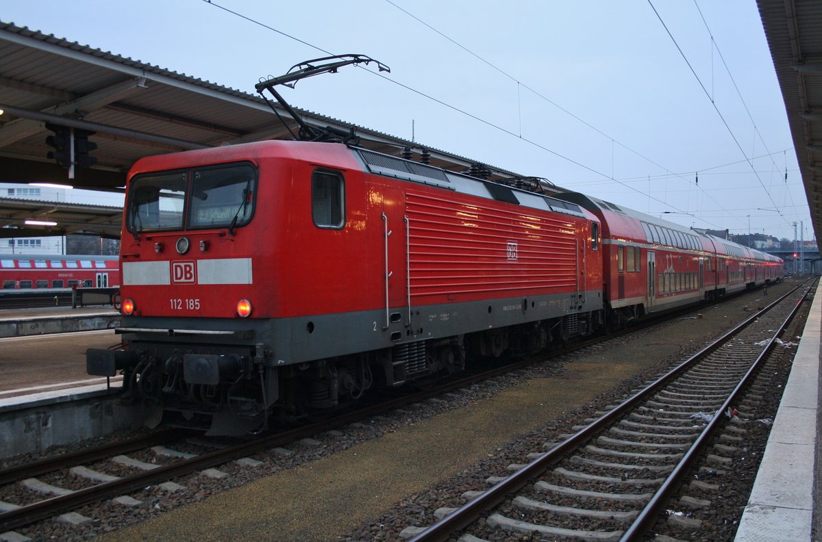112 185 drückt am Morgen des 12.2.2017 den RE3 (RE3342) von Berlin Hauptbahnhof (tief) nach Schwedt(Oder) aus dem Bahnhof Berlin Lichtenberg. Alexander
