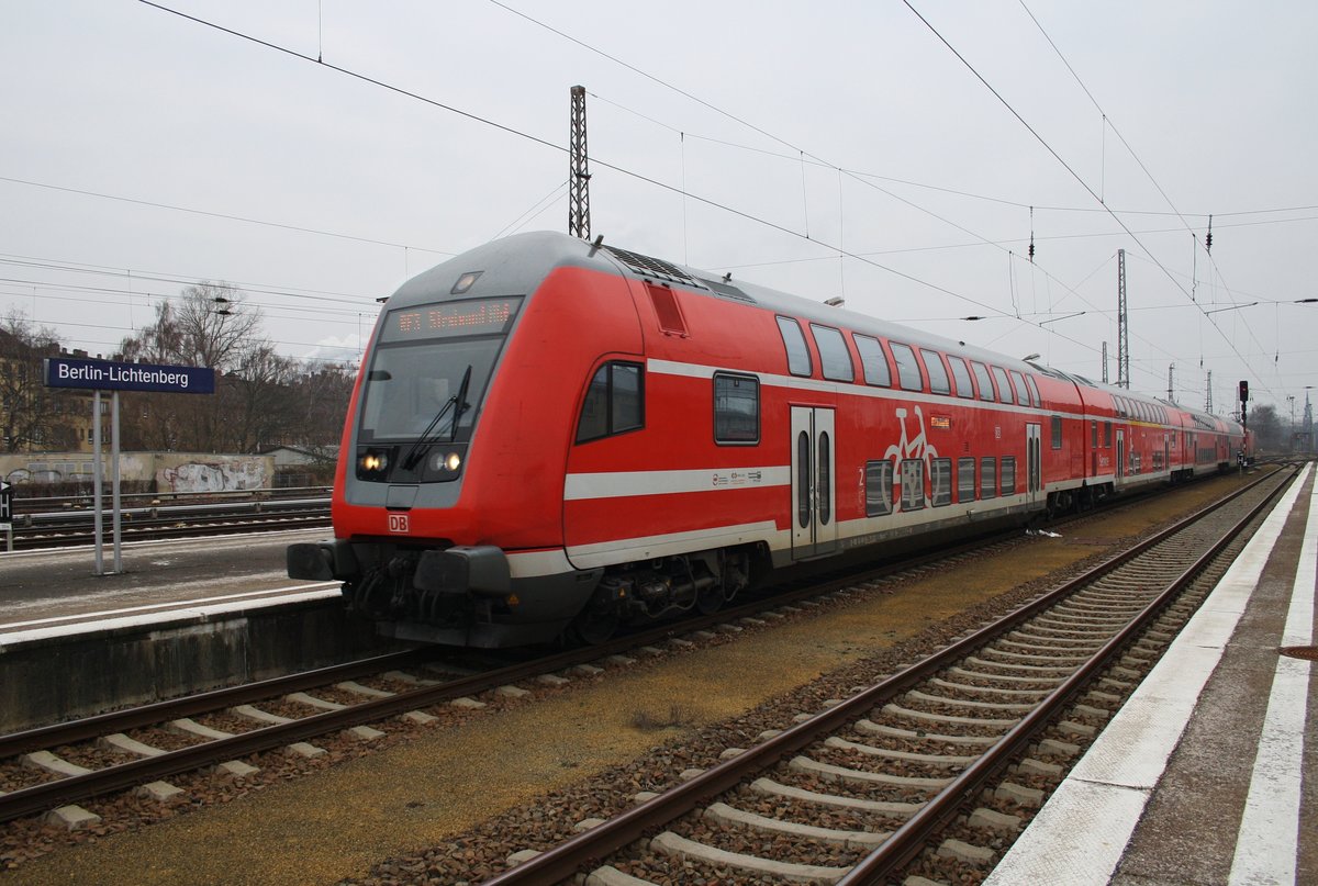 112 189-6 ist am 11.2.2017 mit dem RE3 (RE3311) von Stralsund Hauptbahnhof nach Berlin Hauptbahnhof (tief) unterwegs. Soeben wird ein Halt in Berlin Lichtenberg eingelegt. Alexander