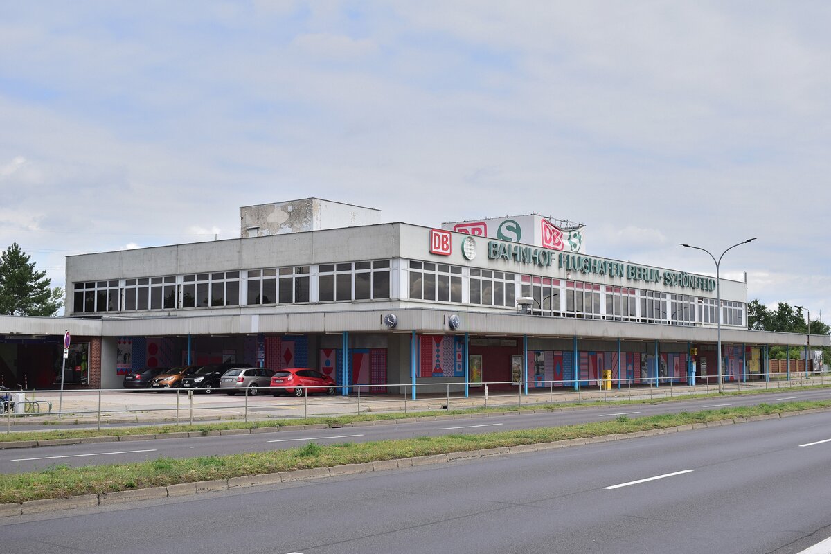 Blick auf das seit vielen Jahren leerstehende Empfangsgebäude von Berlin Schönefeld. Mittlerweile steht das Gebäude unter Denkmalschutz.
