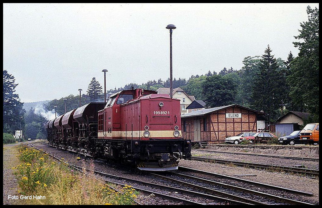 199892 ist mit einem Schotterzug unterwegs. 997233 ist mit dem P 14443 aus Drei Annen Hohne angekommen. Gerd Hahn