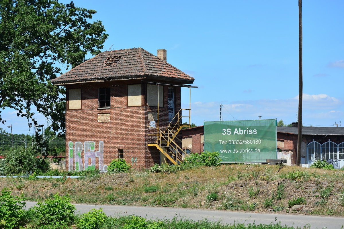 Nachdem das ehemalige Bw in Elstal freigeschnitten wurde kommen etliche Gebäude wieder zum Vorschein. Hier entsteht in den kommenden Jahren der Bahn Technologie Campus Havelland. Ob dieses Wärterstellwerk den Abriss überlebt und erhalten bleibt ist ungewiss.
