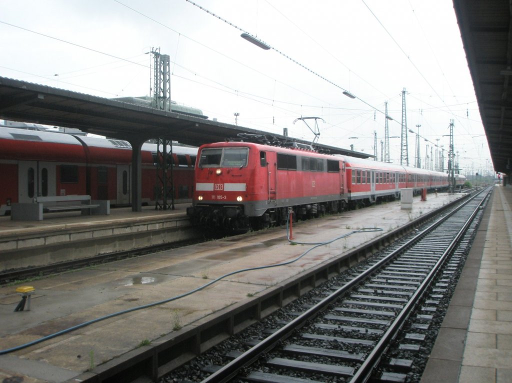 Während vorne die 111 209-3 sich dem Prellbock nähert, darf die hintere 111 in ca. 15 Minuten die knapp zweistündige Fahrt mit ihren bayerischen Puma Wagen gen Südosten antreten. Lawrence Fredholm