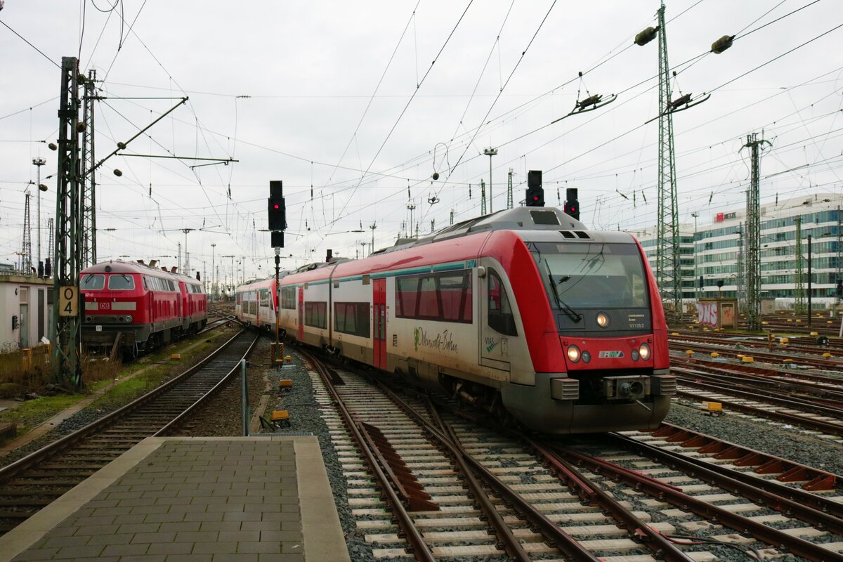 die beim früheren Betreiber Bayerische Regiobahn nicht mehr benötigt werden, eingesetzt. Das Ganze scheint auch hier mit heißer Nadel gestrickt zu sein, die elektronischen Zielanzeiger werden durch gedruckte Schilder ersetzt, so hat man das vor 50 Jahren auch schon gemacht. Aber es scheinen ausreichend Fahrzeuge vorhanden zu sein (im Gegensatz zur RB15), am 16.01.2023 kam mittags ein Zug der RB12, bestehend aus 3 Triebzügen in Frankfurt Hbf an, die Wendezeit für die Rückfahrt nach Königstein (Taunus) beträgt etwa 10 Minuten. Bis dahin müssen natürlich die Schilder ausgetauscht werden, der VT217 (95 80 0648 217-7 + 95 80 0648 717-6) wird dann natürlich an der Spitze sein. Thomas Scherf