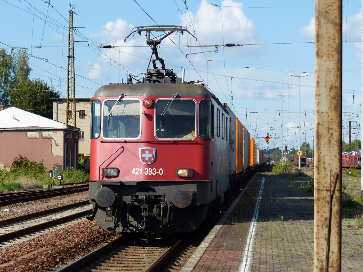mit einem Containerzug am Haken rauscht gleich 182 912-6 durch den Bahnhof Gößnitz (Thür.) Richtung Zwickau. Schöne Grüße an den Tf (23.12.14) Silvio Hass