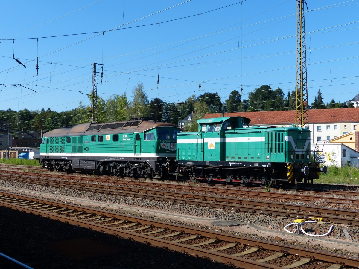 Die 16 Kilometer lange RB37 zwischen Glauchau (Sachs) und Gößnitz wird von der Erzgebirgsbahn mit Triebzügen der Baureihe 642 bedient. Aufgrund von Triebfahrzeugmangel hatte schon vor geraumer Zeit die City-Bahn Chemnitz ausgeholfen mit Triebwagen der Baureihe 650. Da die City-Bahn den Triebwagen wieder gebraucht hat wurde bei der PRESS (Eisenbahn-Bau- und Betriebsgesellschaft Pressnitztalbahn mbH) nachgefragt ob man aushelfen könne. In der Woche vom 27.08.2018 - 31.08.2018 wurde dann mit 112 565-7 und grünen Silberling und Bom gefahren.