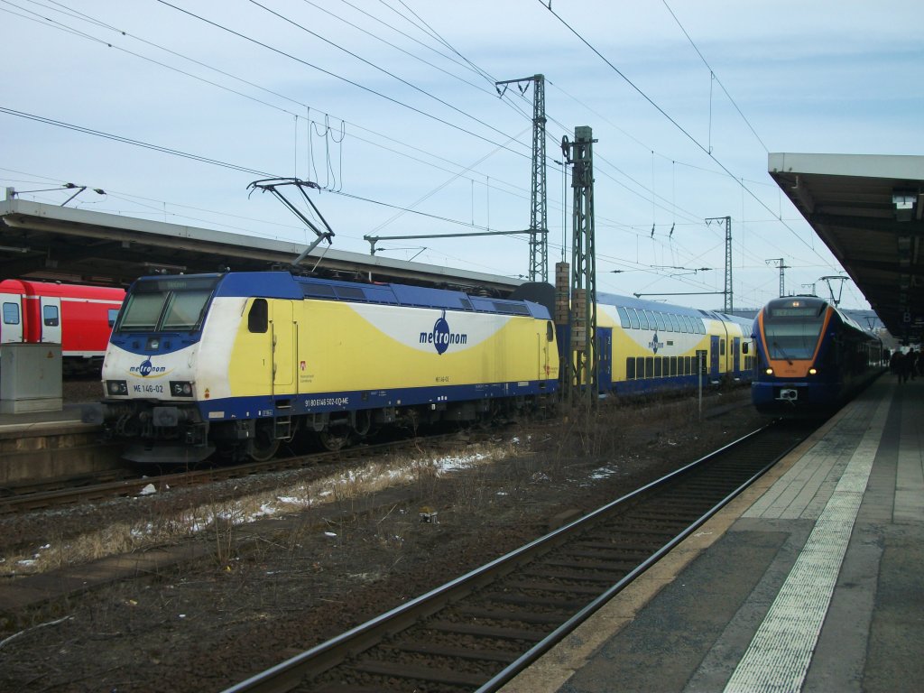 ME 146-02 mit ME 82826 nach Uelzen und zwei Cantus als CAN 24021 nach Hann Münden und CAN24077 nach Bebra, stehen am 23. März 2013 in Göttingen. Mirko W.