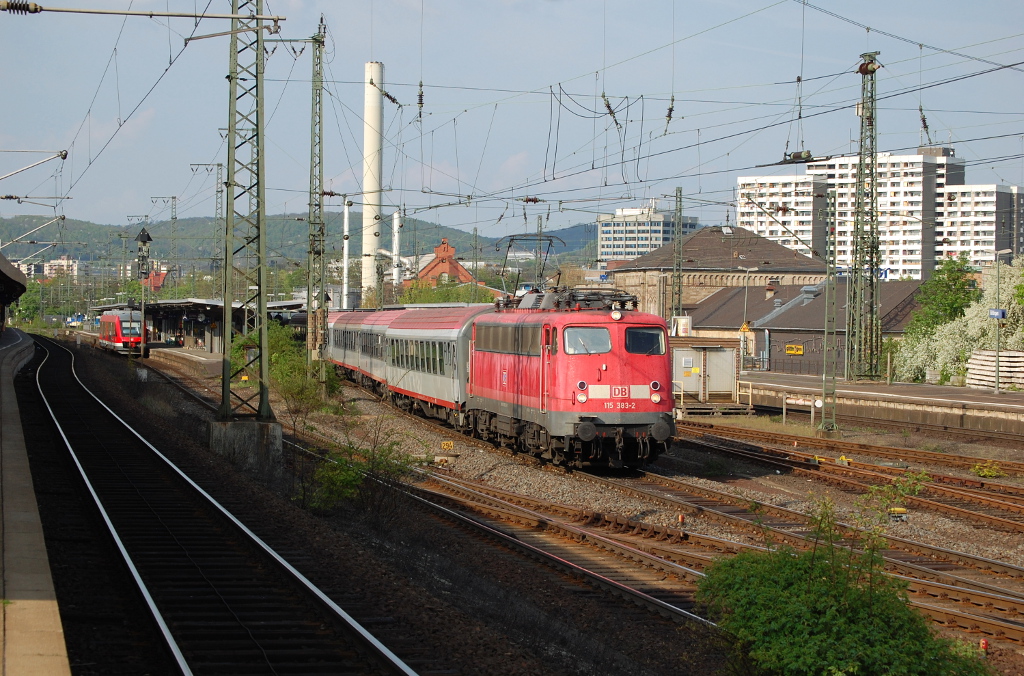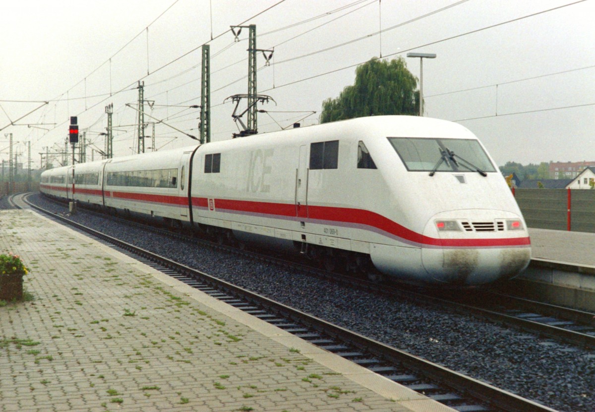 401 xxx als ICE 672 "Markgraf" (Karlsruhe Hbf–Hamburg-Altona) und 110 436 mit Sonderzug zum Oktoberfest nach München am 25.09.1993 in Göttingen Gustav Richard