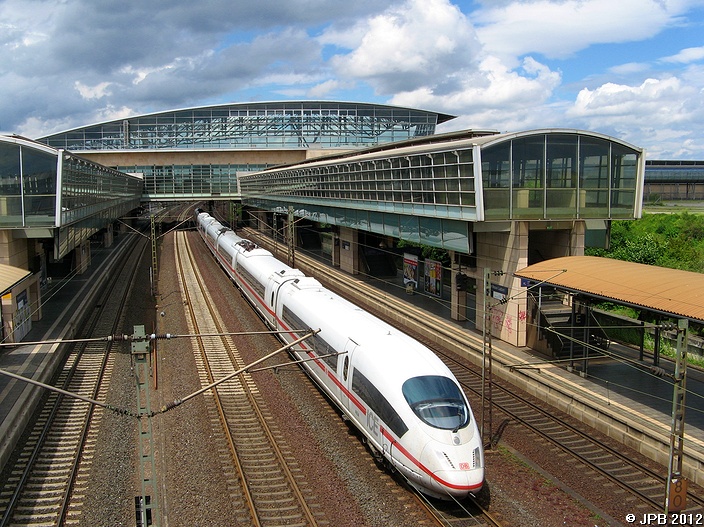 ICE 3 durchfährt auf Gegengleis den Bf Hannover Messe/Laatzen am 11.07.2012
