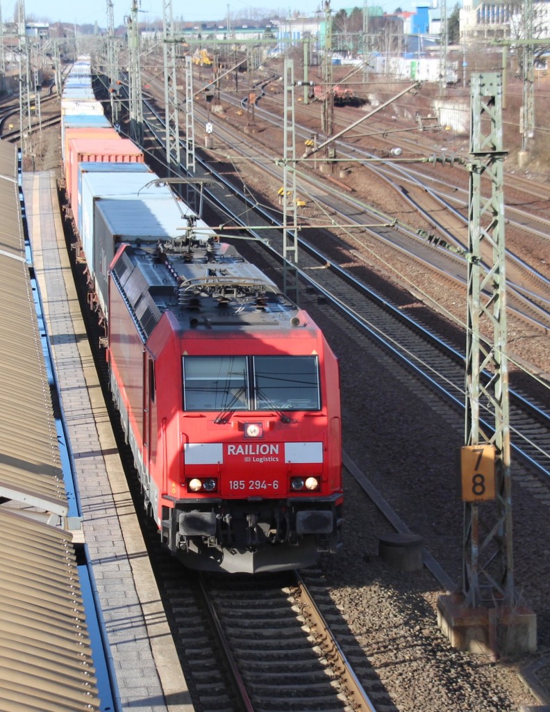 28.2.15 Hannover Messe / Laatzen. 185 294 vor Containerzug