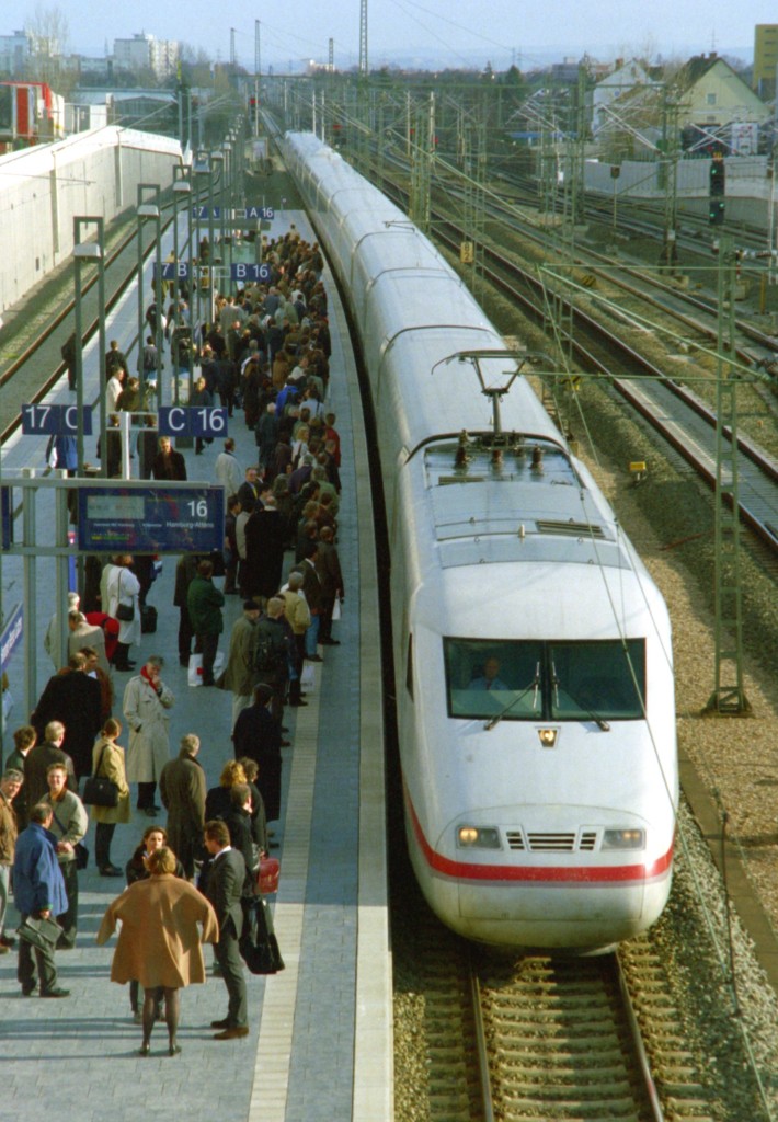 ICE 2 in Doppeltraktion (Tz Dessau + Tz Koblenz) durchfährt den Bf Hannover Messe/Laatzen am 01.06.2009