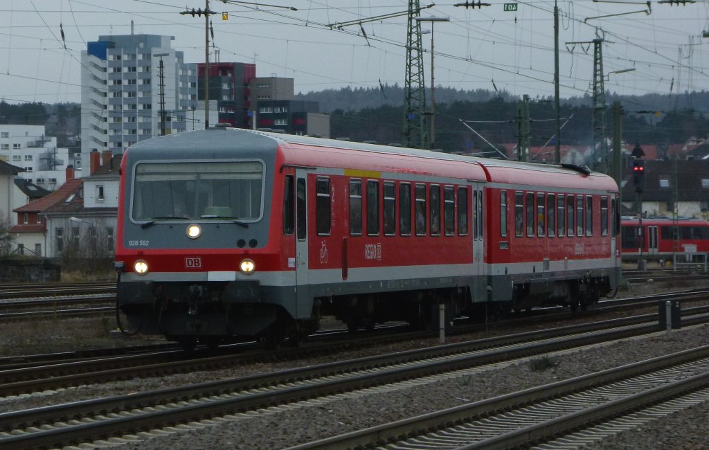 643 031 steht am 21.01.2012 als RB von Kusel in Kaiserslautern, im Hintergrund ist das beleuchtete Fritz Walter Stadion wo der 1 FCK gegen Werder Bremen spielte Tim Giermann
