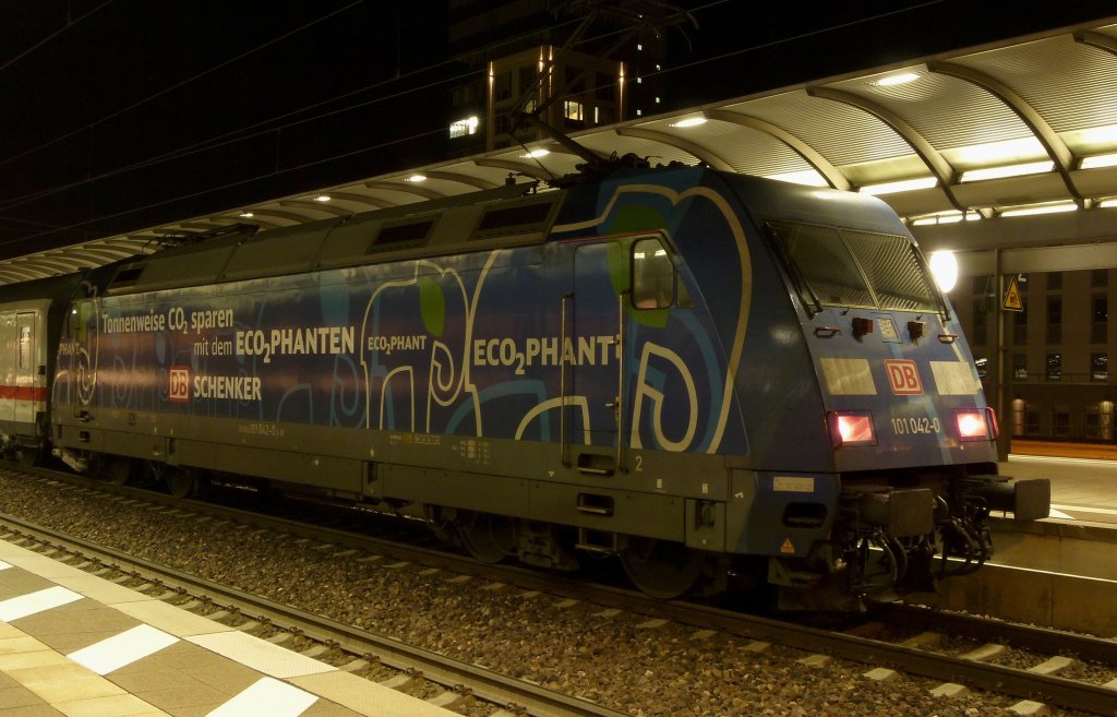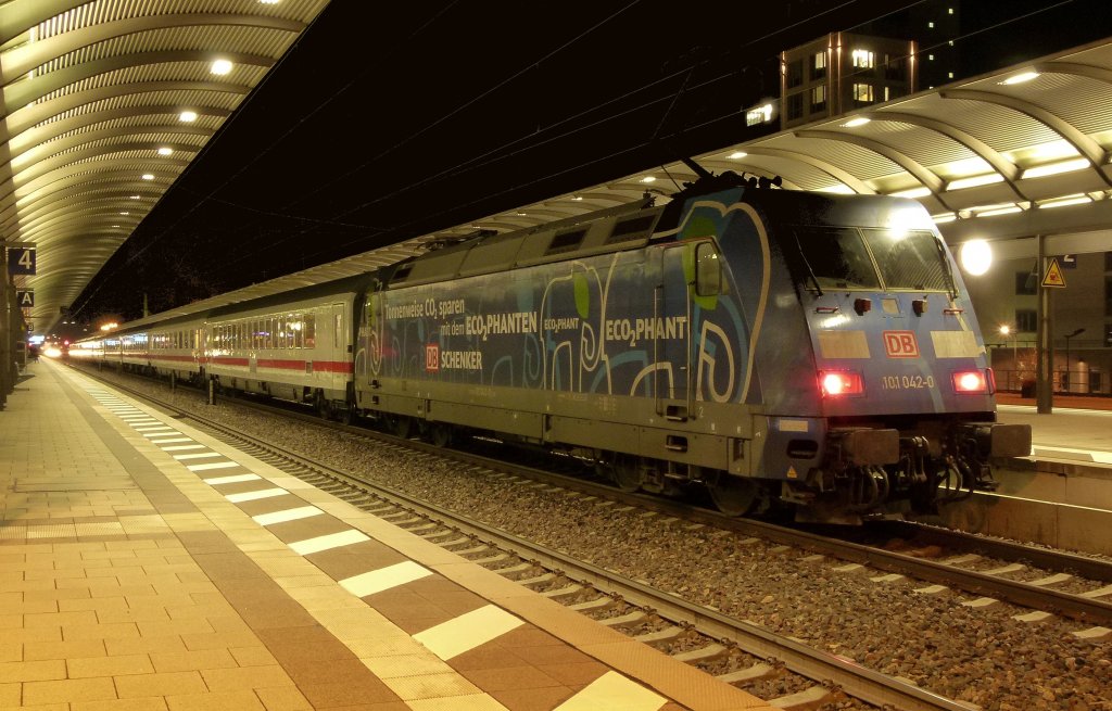 101 042-0 (Tonnenweise CO2 sparen mit dem ECO2PHANTEN - DB Schenker) steht mit dem EC 216 Graz - Saarbrücken am 13.01.2012 in Kaiserslautern Tim Giermann