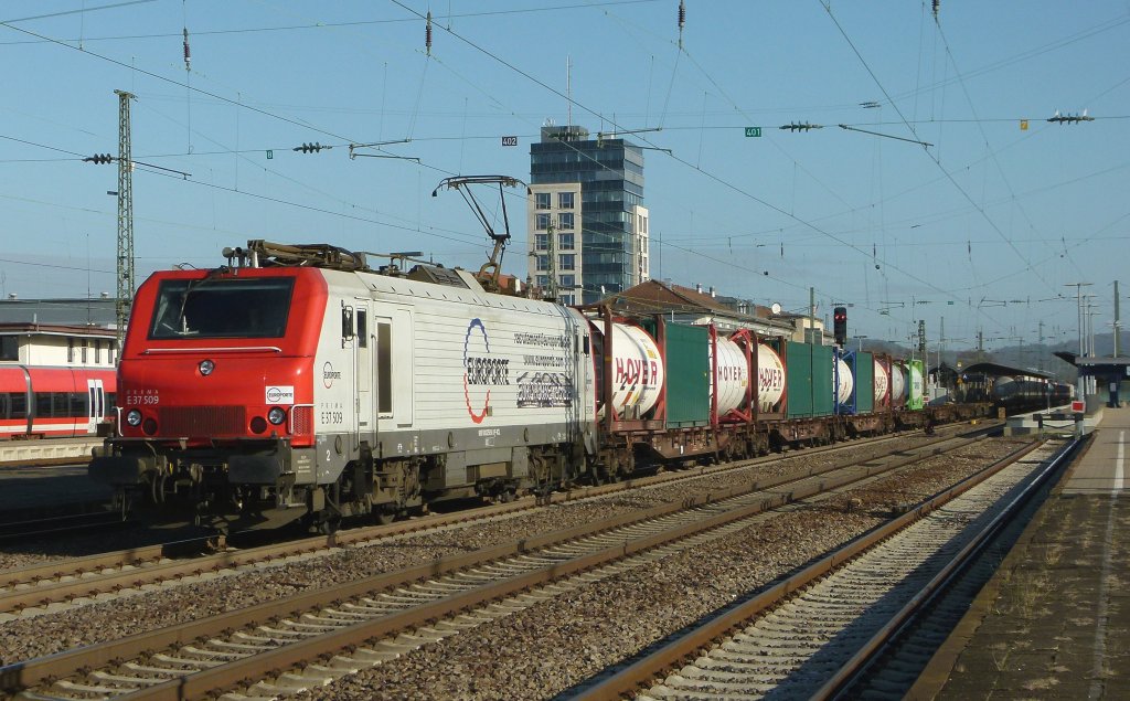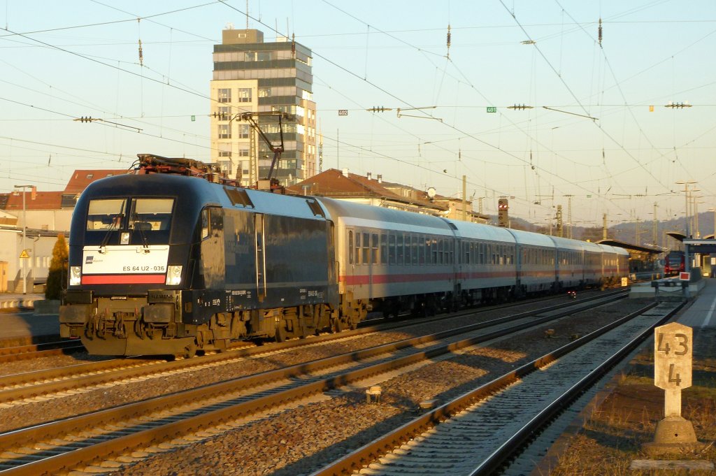 Im Portrait die 101 042-0 (Tonnenweise CO2 sparen mit dem ECO2PHANTEN - DB Schenker) am 15.01.2012 mit dem EC 216 Graz - Saarbrücken in Kaiserslatern Tim Giermann