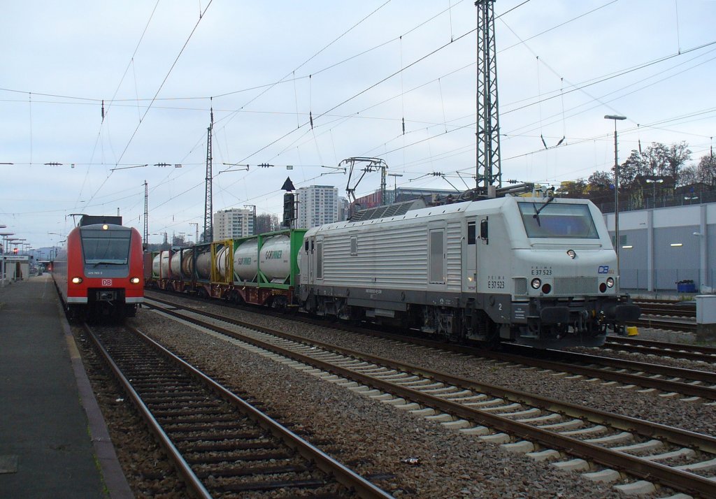 186 328-1 zieht einen gemischten Güterzug am  26.11.2011 durch Kaiserslautern