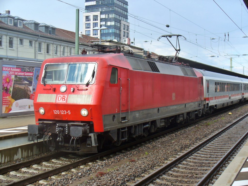 Am 16.06.2011 stehen 1116 098-3 mit dem IC 2058 Frankfurt (Main) - Saarbrücken und 406 080 (Würzburg) als ICE 9551 Paris Est - Frankfurt (Main) zusammen in Kaiserslautern Hbf Tim Giermann