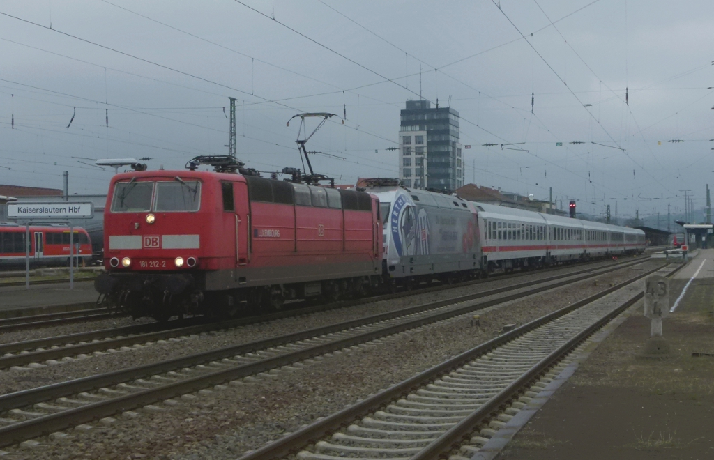 Das hat man nicht alle Tage, 181 212-2 (Luxemburg) mit 101 144-4 (Hertha BSC) in schlepp am 09.04.2012 mit dem IC 2258 Frankfurt (Main) - Saarbrücken in Kaiserslautern Tim Giermann