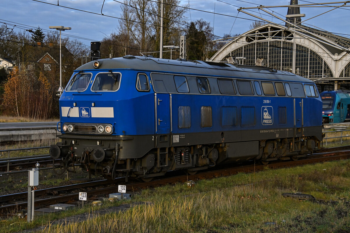 D-PRESS 218 454-7 (218 056-1) rangierte am 01.12.2025 in die Abstellung des Lübecker Hbf (AL).