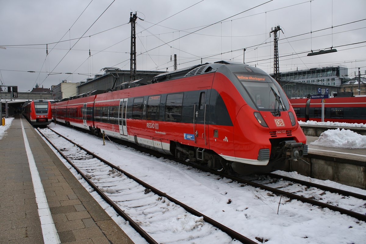 642 093-8 und 642 590-3 treffen am 7.1.2019 als RE57588 nach Kempten(Allgäu) Hauptbahnhof im Münchener Hauptbahnhof auf 445 099-8 als RE4017 von Ingolstadt Hauptbahnhof. Alexander