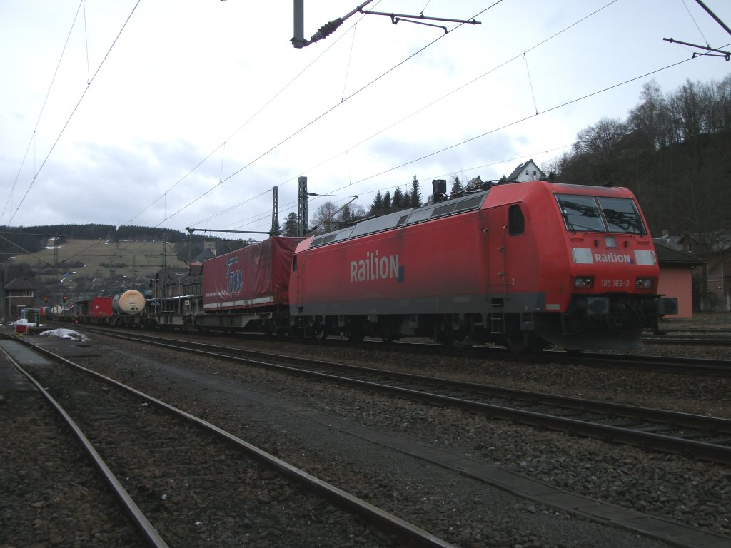 Die Überraschung des Tages. 152 005 erreicht mit einem langen Güterzug Probstzella. Später ging es mit Vorspann- und Schiebelok über die Frankenwaldrampe nach Pressig-Rothenkirchen. Martin Schneider