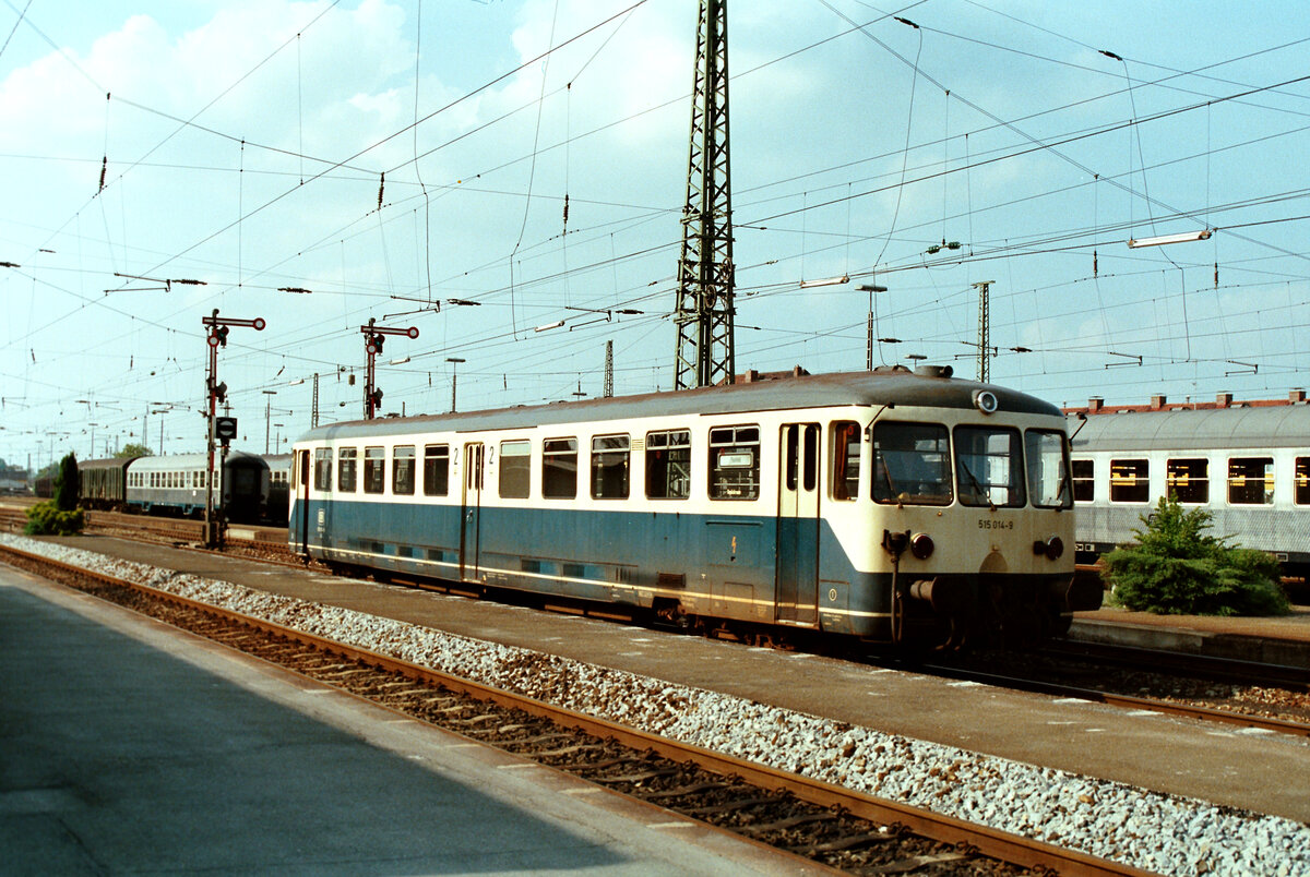 Nördlingen DB-Bahnhof (Sommer 1984), Akkuzug der DB-Baureihe 515 (515 018-9). Solche Akkuzüge der Baureihe 515/815 sollten nur noch bis 1995 auf DB-Gleisen fahren Frank Nowotny