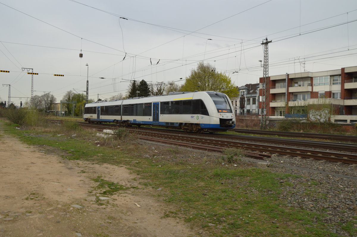 Am 9.4.2018 verlässt die 4185 008-4 Rheydt Hbf in Richtung Köln, sie musste erst einen Gegenzug aus dem eingleisigen Abschnitt zwischen Rheydt Hbf und Rheydt-Odenkirchen passieren lassen, bevor sie mit ihrem Kalkzug ihre Fahrt fortsetzen konnte. Andreas Strobel