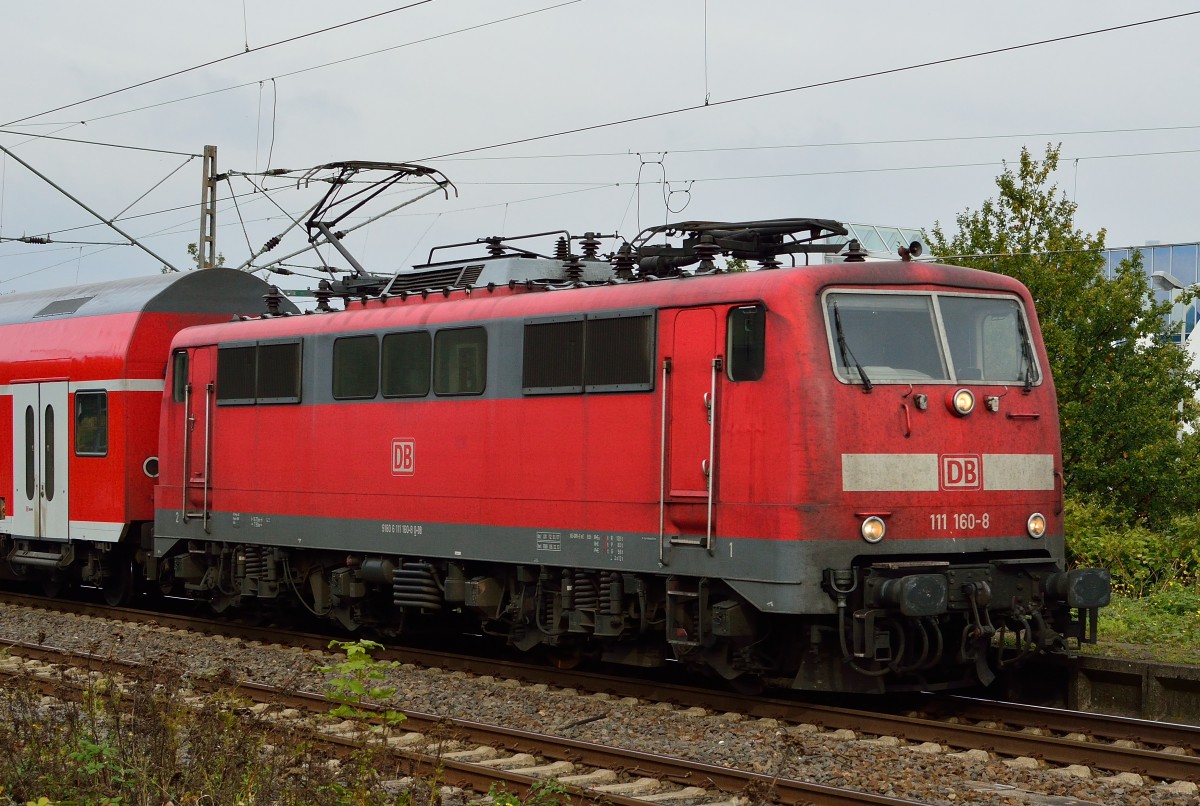 Aus Mönchengladbach kommend fährt hier am Samstag den 12.10.2013 die 111 160-8 in den Rheydter Hbf ein, mit einem RE4 Zug nach Aachen. Andreas Strobel