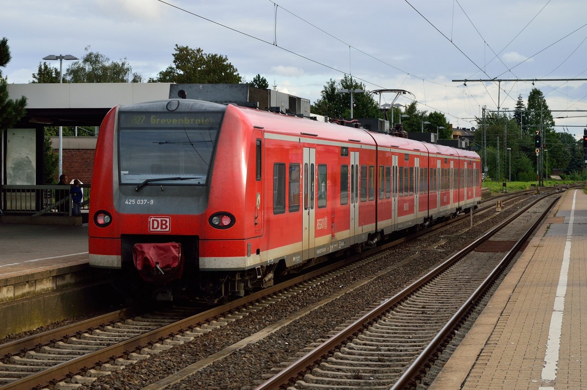 Wegen Bauarbeiten zwischen Pulheim und Grevenbroich fahren die RE8 und RB 27 im Pendel zwischen Grevenbroich und Mönchengladbach Hbf. Hier ist der 425 037-9 als Pendelzug in Rheydt Hbf auf dem Weg nach Grevenbroich am Dienstag 10.9.2013 Andreas Strobel