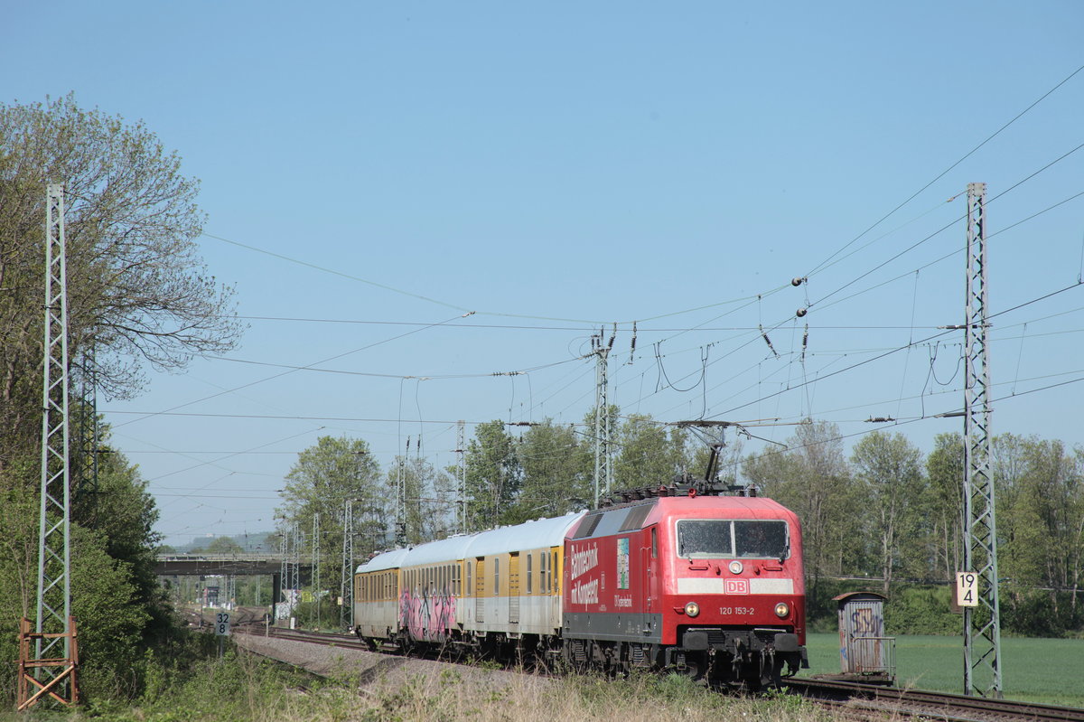 Glück muss man haben. Als der Lokführer den RB 27 (Rommerskirchen - Koblenz) mit der 143 009 am Zugschluss schon für die Rückfahrt vorbereitete, durchfuhr 120 119-3 den Bahnhof Rommerskirchen als Umleiter IC 1926 (Köln Hbf - Berlin Ostbahnhof).