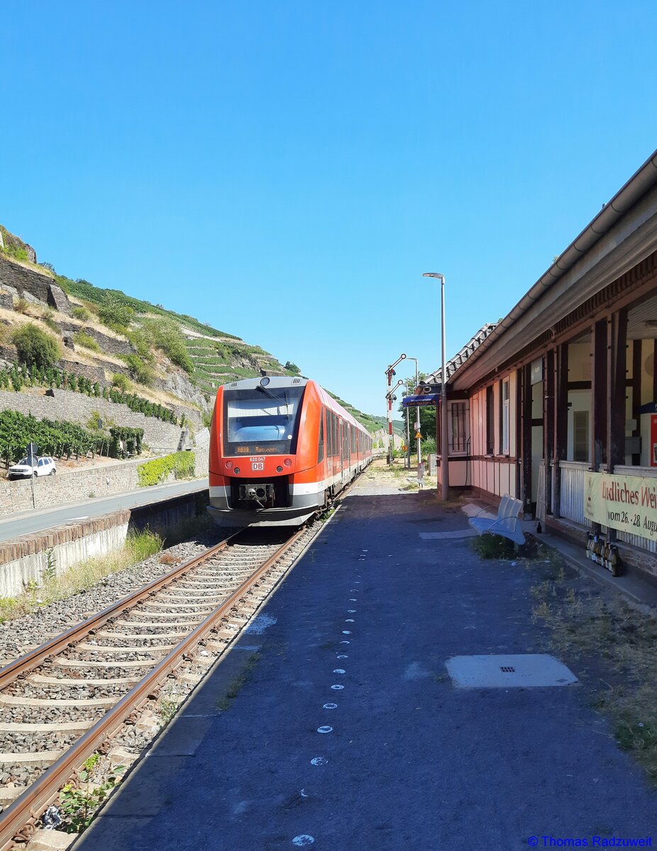 19. August 2022: Freie Fahrt von Walporzheim mit der Ahrtalbahn nach Remagen. Bis Walporzheim ist die Strecke wieder befahrbar.