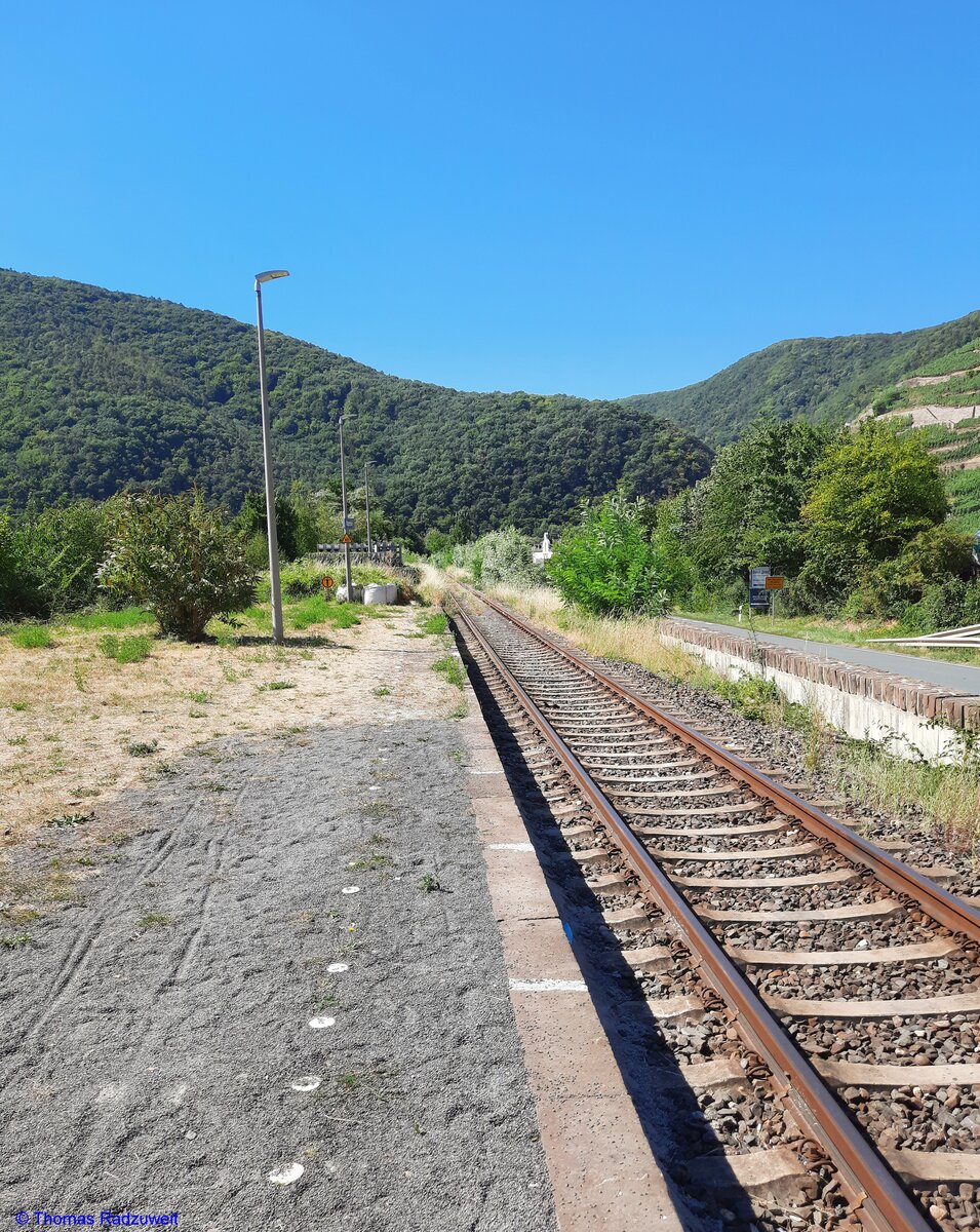 19. August 2022: Nach dem Bahnhof Walporzheim, dem vorläufigen Ende der Ahrtalbahn, verlieren sich die Gleise im nirgendwo..