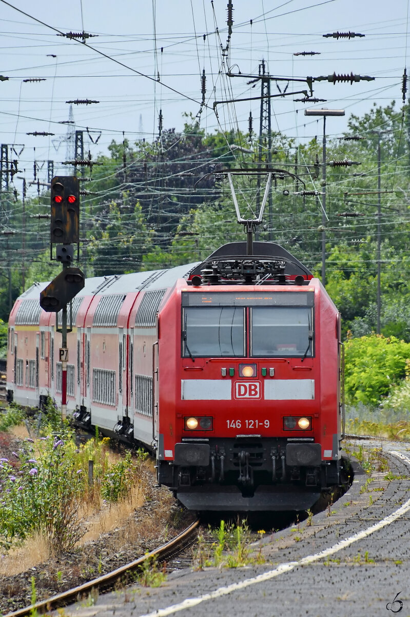 Der Elektrotriebzug 426 521-1 ist als RB46 in Richtung Gelsenkirchen unterwegs und hier im Juni 2024 kurz vor der Ankunft am Hauptbahnhof Wanne-Eickel zu sehen. Christian Bremer