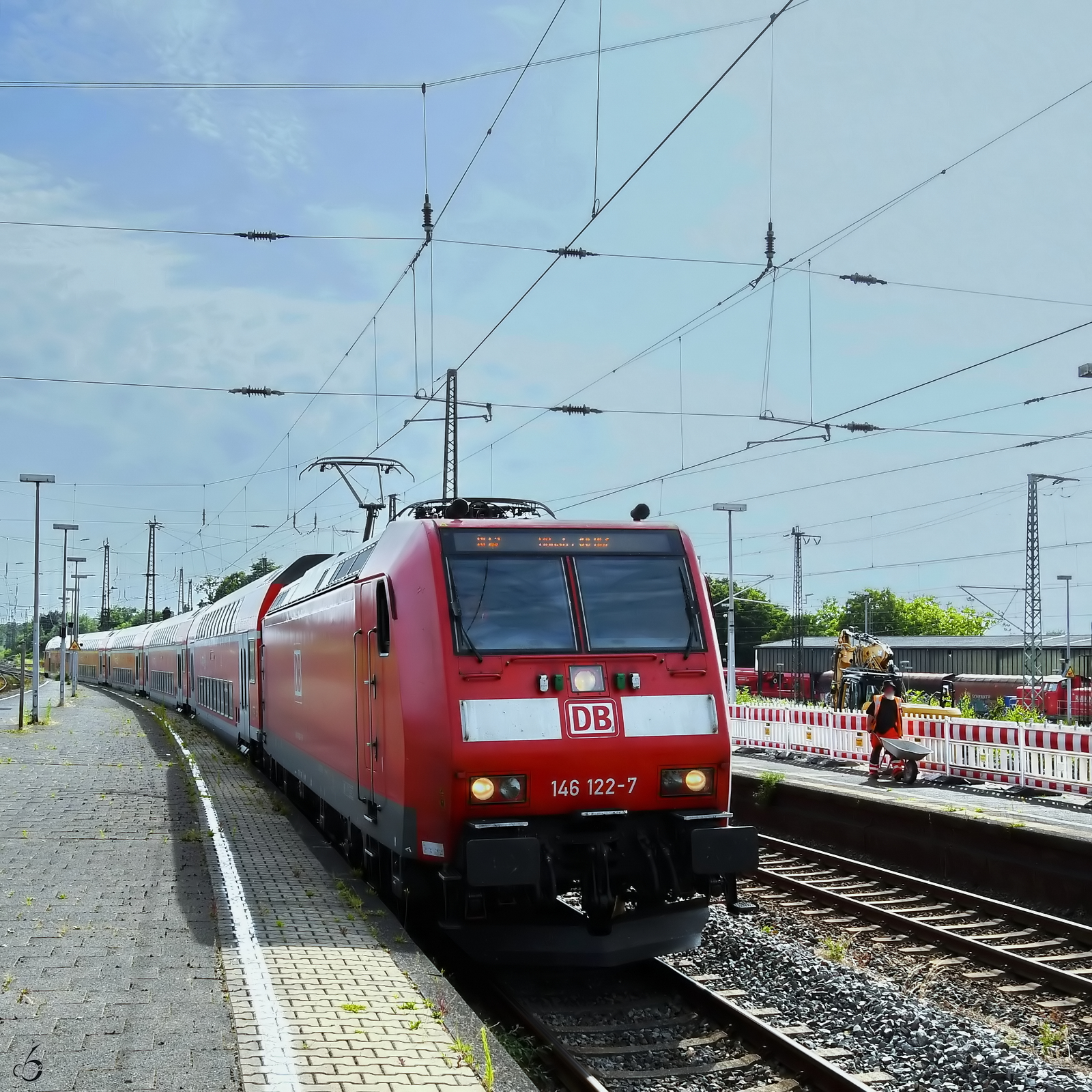 Der Regionalexpresszug RE2 ist hier auf dem Weg nach Osnabrück bei der Weiterfahrt vom Hauptbahnhof in Wanne-Eickel zu sehen. (Juni 2024) Christian Bremer