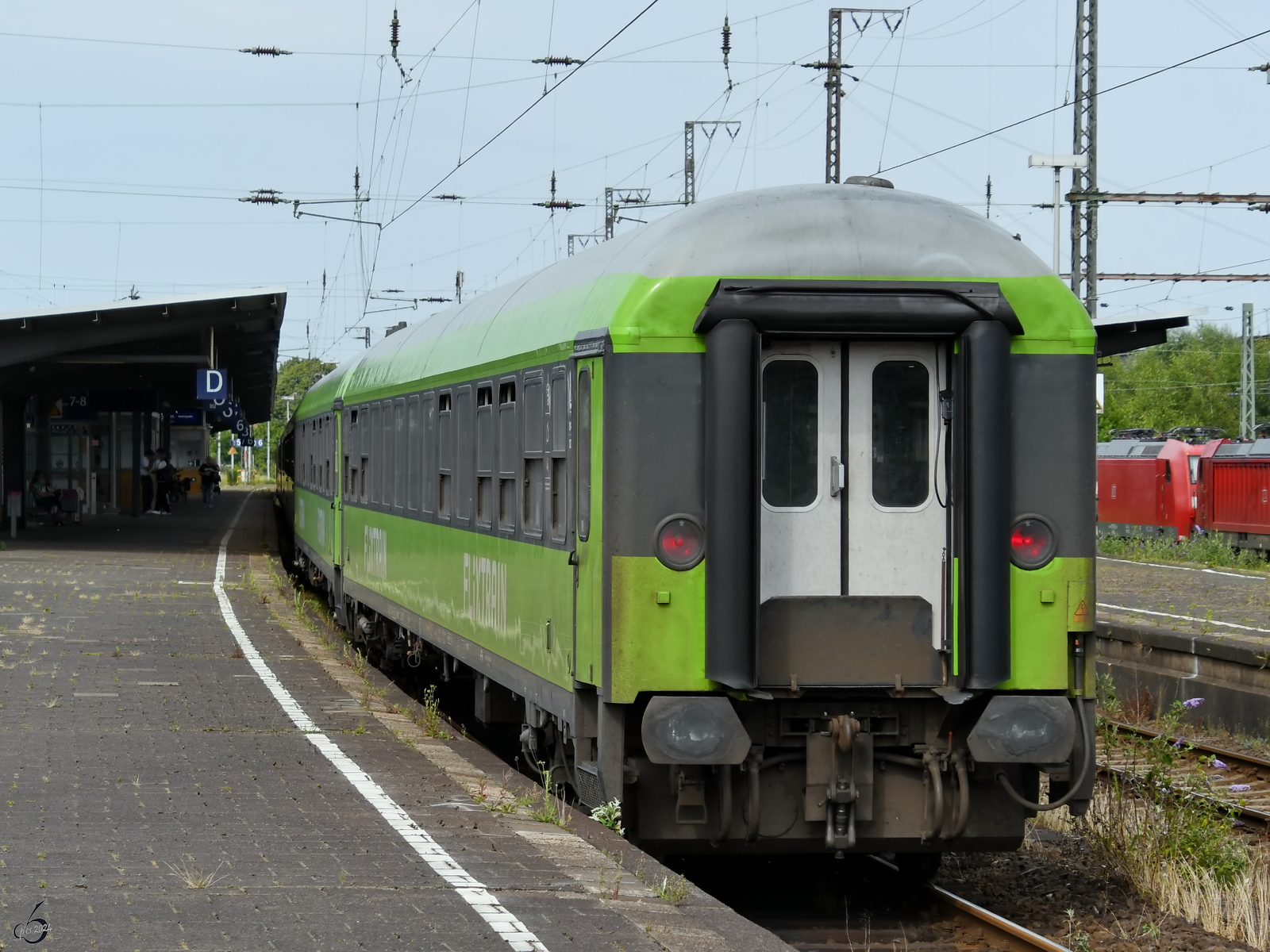 Die Triebzüge 401 054-2 "Flensburg" und 3427 005 warten auf die Weiterfahrt, so gesehen Ende Juni 2024 am Hauptbahnhof in Wanne-Eickel. Christian Bremer