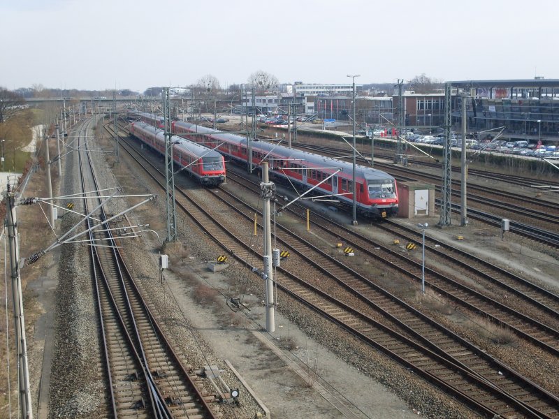 Begegnung zwischen einem IC nach Berlin Ostbahnhof und einer RB nach Braunschweig Hbf im Wolfsburger Hbf am 06.04.08 um 17:19.