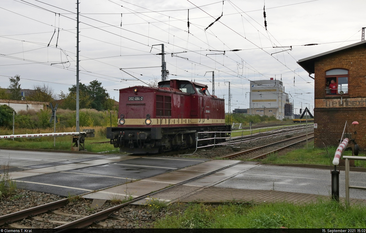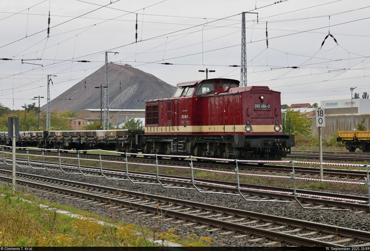 VDE 8 Komplexmaßnahme Halle Rosengarten–Angersdorf ▶ Standort: Bahnhof Teutschenthal Hochbetrieb am Schotterwerk Teutschenthal: 203 229-0 (202 484-2 | 112 484-1 | 110 484-3 | DR V 100.1) rangiert mit leeren Flachwagen Richtung Ablaufberg. Auch der Tf bleibt von der Regendusche nicht verschont. 🧰 Cargo Logistik Rail Service GmbH (CLR) 🚩 Bahnstrecke Halle–Hann. Münden (KBS 590) 🕓 15.9.2021 | 13:42 Uhr