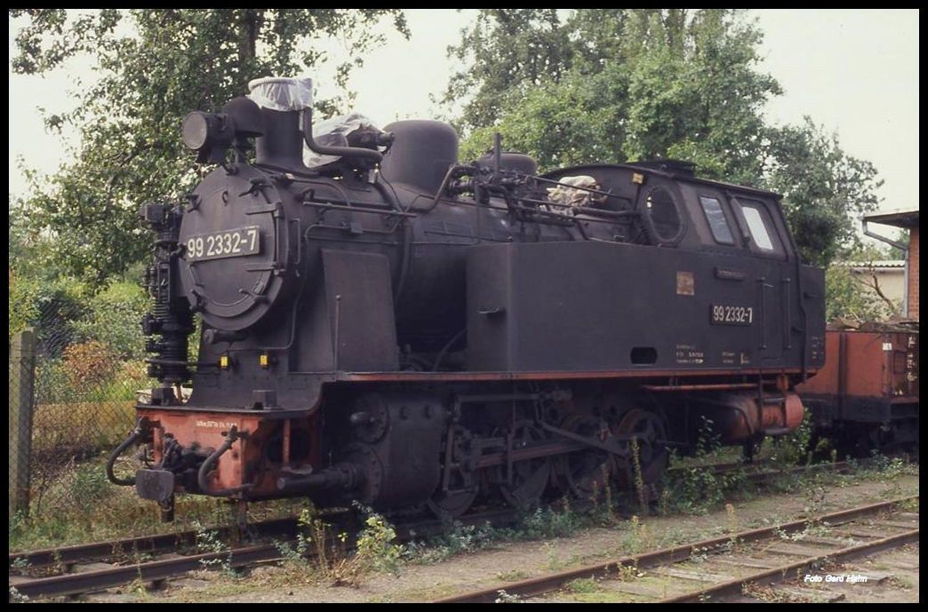 18. August 1984, die Lokomotive 99 331 der Schmalspurbahn Bad Doberan - Kühlungsborn auf der Lokschau in Radebeul-Ost. Die Lok wurde 1951 bei LKM gebaut und zunächst bei der Haldenbahn der SDAG Wismut in Oberschlema eingesetzt. 1959 übernahm sie die DR für den "Molli". Vom 14. bis 22. September 2019 fuhr sie bei der Borkumer Kleinbahn und Dampfschiffahrt GmbH. Möglich ist dies, weil beide Bahnen auf der Spurweite von 900 mm fahren. Jürgen Krause