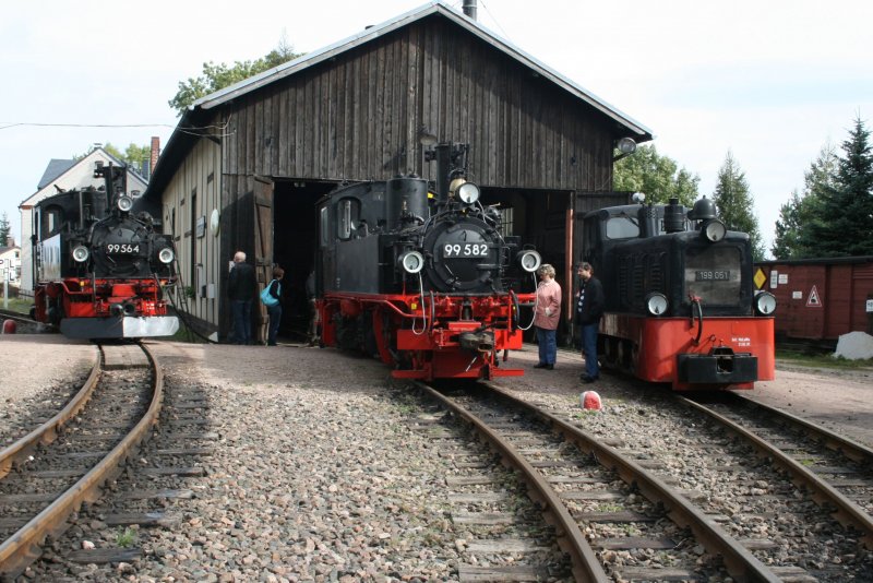 Am 03.und 04.10.09 fand das 3.WCd Schmalspurfestival auf der Museumsbahn Schönheide und dem Bahnhof Schönheide Süd statt.99 564,die nach ihrer HU noch nicht fertige 99 582 und 199 051 gaben vor dem Lokschuppen in Schönheide eine kleine Lokparade . Steffen Eule