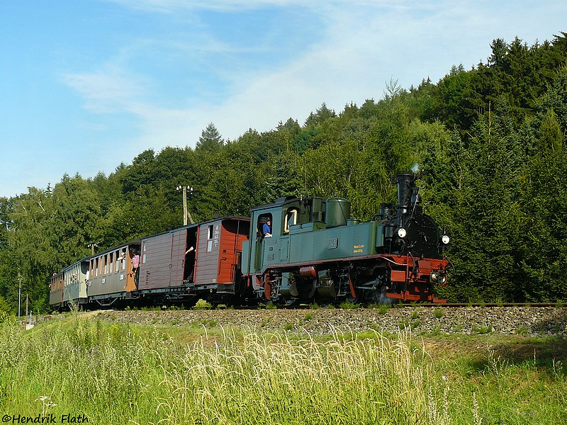Mit dieser Aufnahme möchte ich die Serie aus dem Zittauer Gebirge abschließen. IV K 145 dampft am späten Nachmittag des 02.08.2009 in den Bahnhof Jonsdorf. Die Aufnahme ist ebenfalls im Modelleisenbahner 10/09 auf Seite 4 zu finden. Hendrik Flath