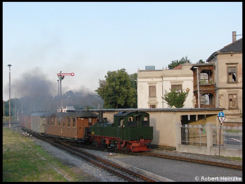 Die Neubau IV K 99 516 ist am 06.09.09 kuz vor dem Bahnhof Schönheide unterwegs.