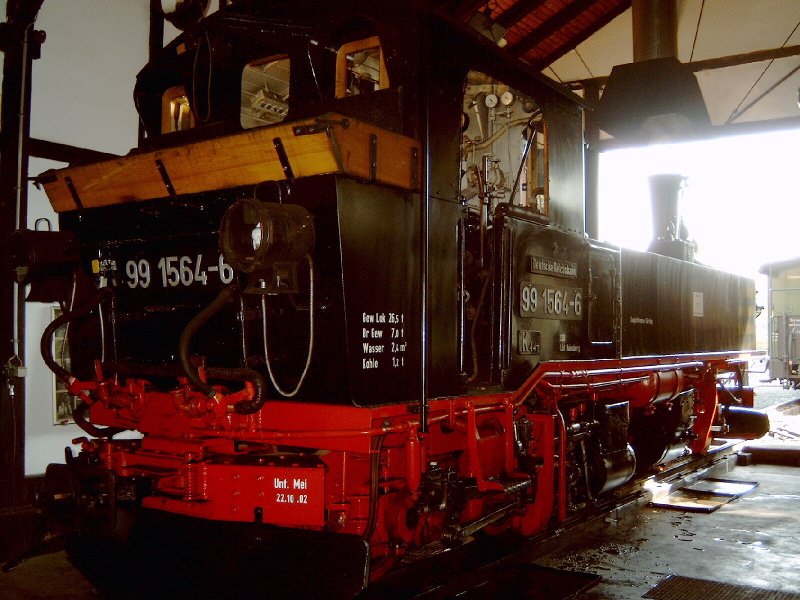 Das Fabrikschild der 99 539 (Neubau unter alter Nummer 1963) hängt eigendlich an der falschen Stelle, es müsste mit dem Gattungsschid getauscht werden. Viele IK K hatten das Fabrikschild auch am Wasserkasten oder am Dampfdom. Gesehen am 01.02.09 in der Fahrzeughalle der Pressnitztalbahn. Daniel T.