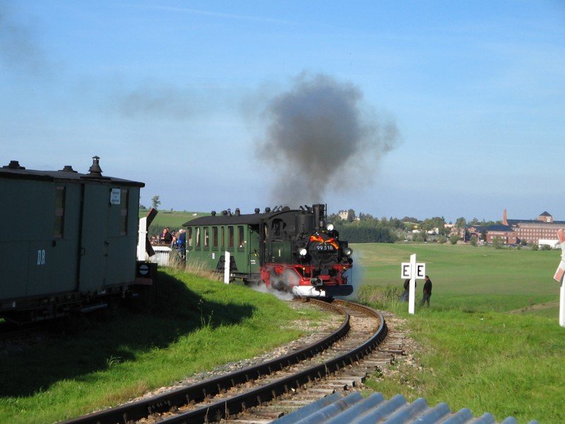 IV K 132 verlässt mit ihrem Traditionszug Friedewald Bad in Richtung Radebeul. Dieses Bild entstand am 09.07.06 von der Baustelle der neuen Umgehungsstraßenbrücke aus. Thomas Oehler