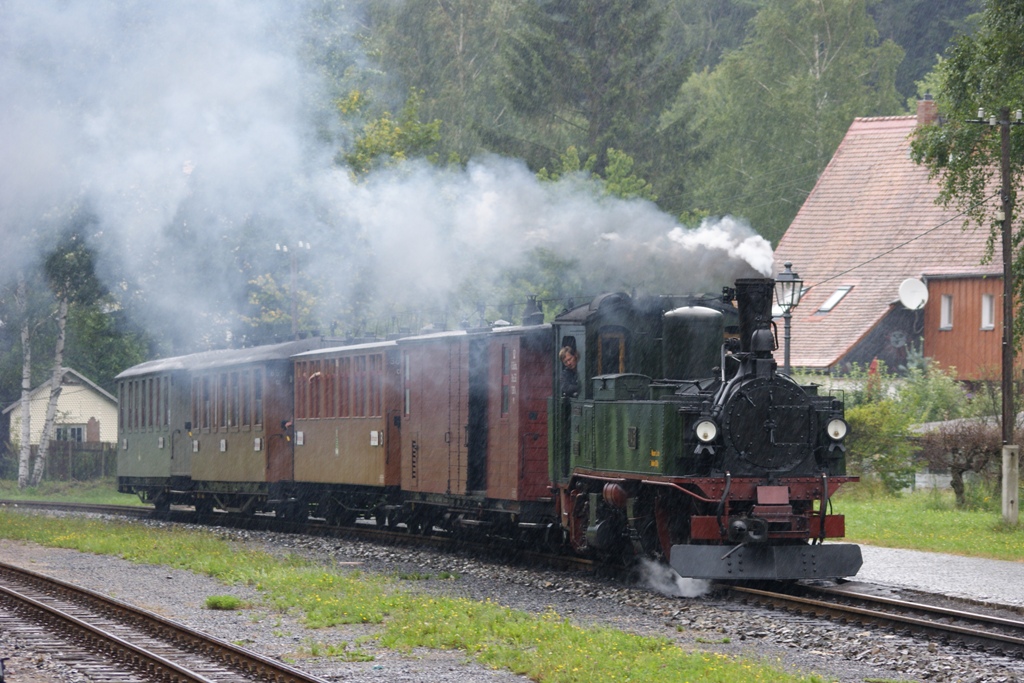 sä. IV K Nr. 145 mit dem Traditionszug der ZOJE bei der Ankunft im Kurort Oybin, zu "bestem Fotowetter". Am 06.08.2011 zur Historik Mobil. Till Weigel
