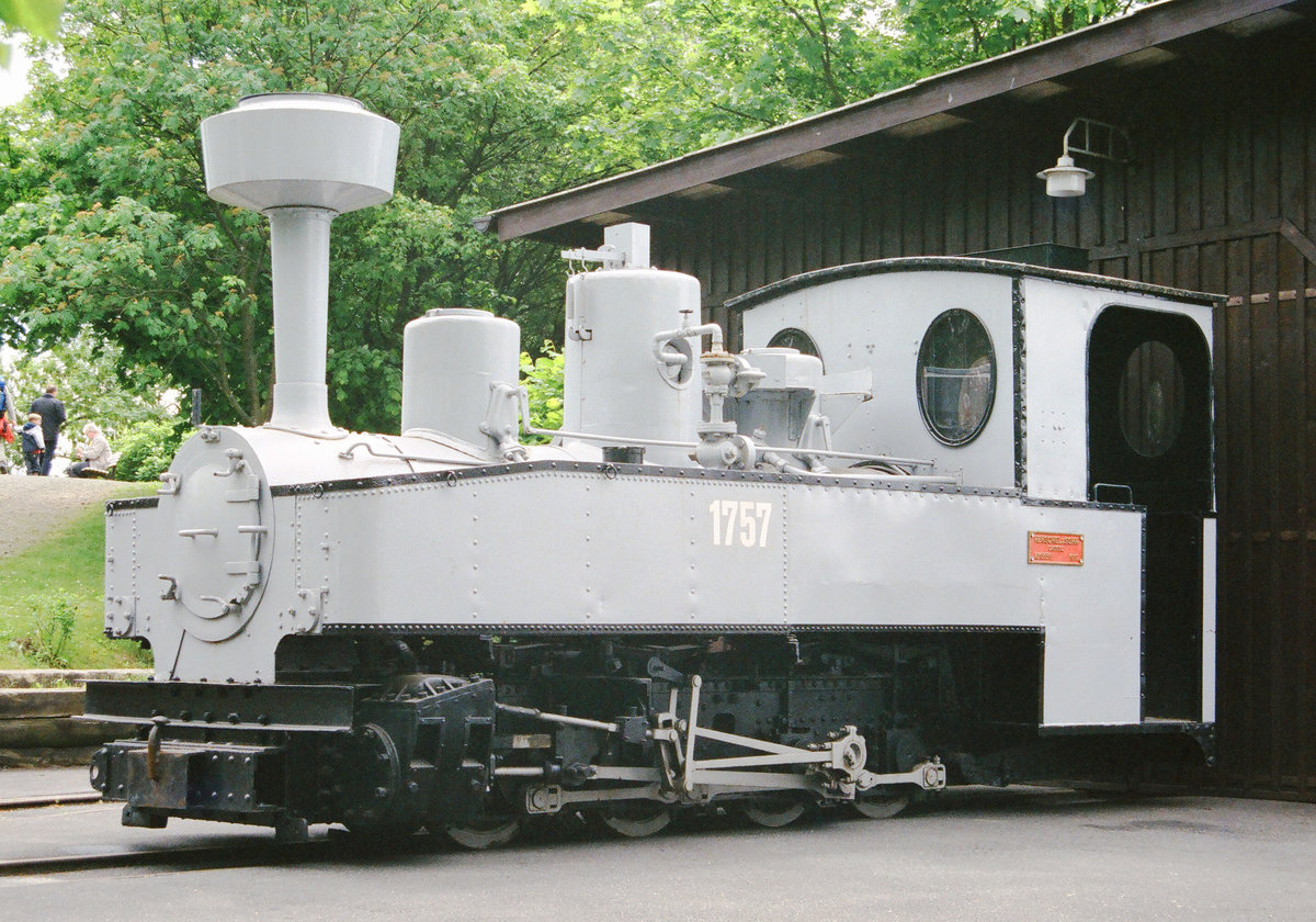 04. Juni 2006, im DDM Neuenmarkt-Wirsberg steht die Feldbahnlokomotive 1757, gebaut 1917 bei Henschel und Sohn Kassel. Nach dem 1. Weltkrieg kam die Brigadelok auf verschiedenen Großbaustellen zum Einsatz, zuletzt bis Ende der 50er Jahre beim Straßen- und Tiefbau im Raum Coburg. Jürgen Krause