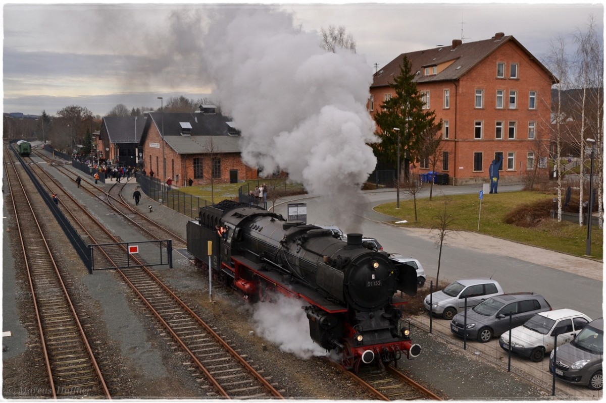01 150 fährt am 13.04.2014 mit dem DPE 13 zurück vom Dampfloktreffen in Dresden nach Stuttgart, hier bei der Durchfahrt am Hp Zwickau-Pölbitz. Matthias Hartmann
