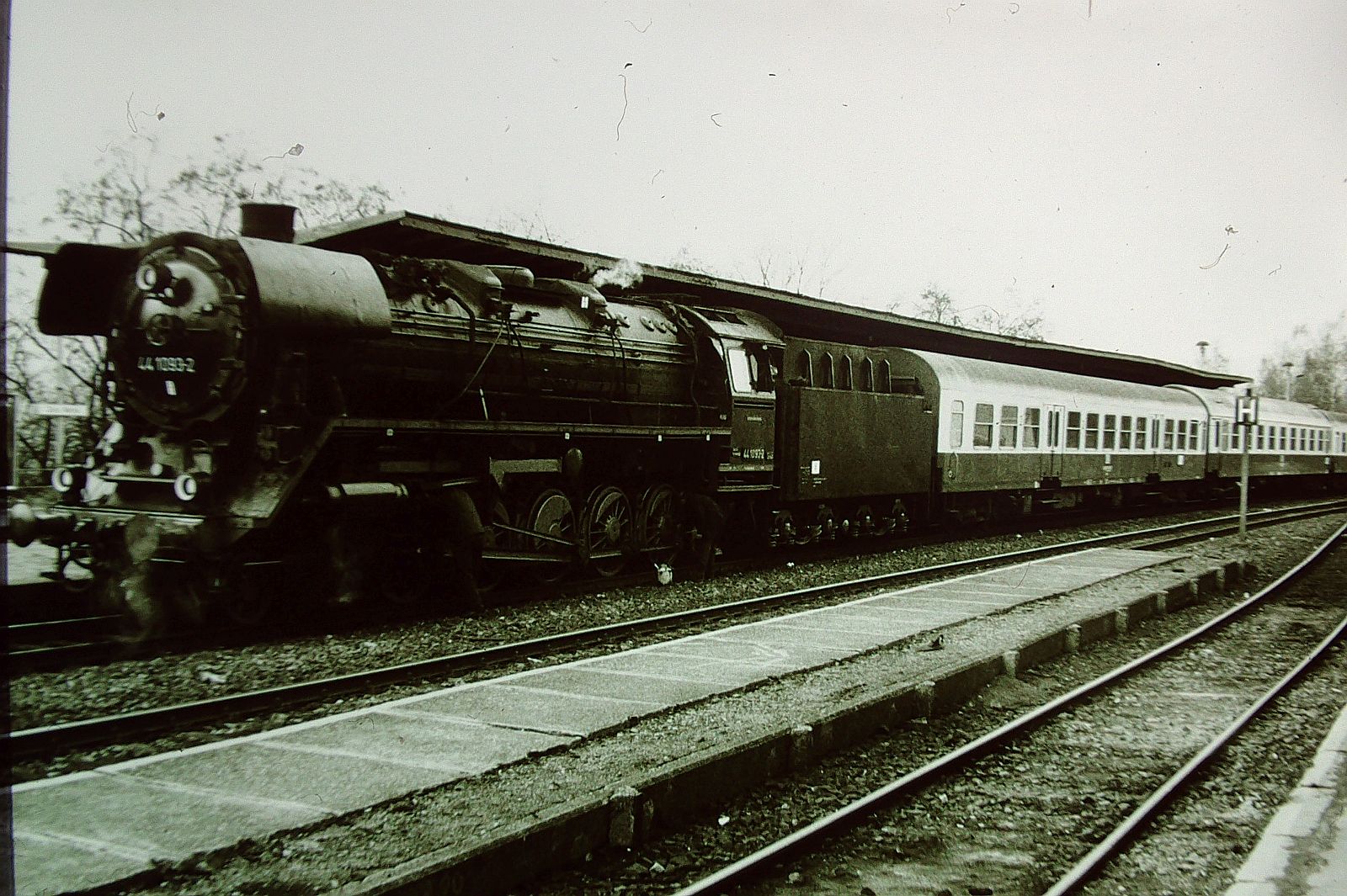 Bevor Loksammler Bernd Falz seine Exponate in Hermeskeil ausstellte, standen einige seiner Fahrzeuge im Bw. St. Wendel (SSWD), so auch die am 26.05.1985 aufgenommene 44 434. Ernst Lauer