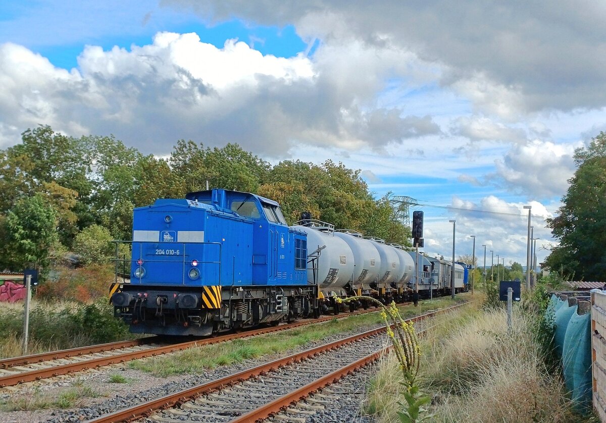 Am 28.09.25 führte 204 013(203 216) der Press den Unkrautspritzzug durch Greppin Richtung Dessau. Am Ende unterstützte 114 703(203 230) ihre Schwester. Martin Schneider