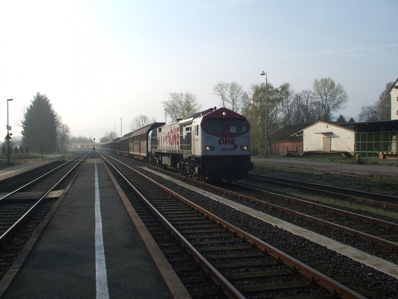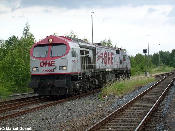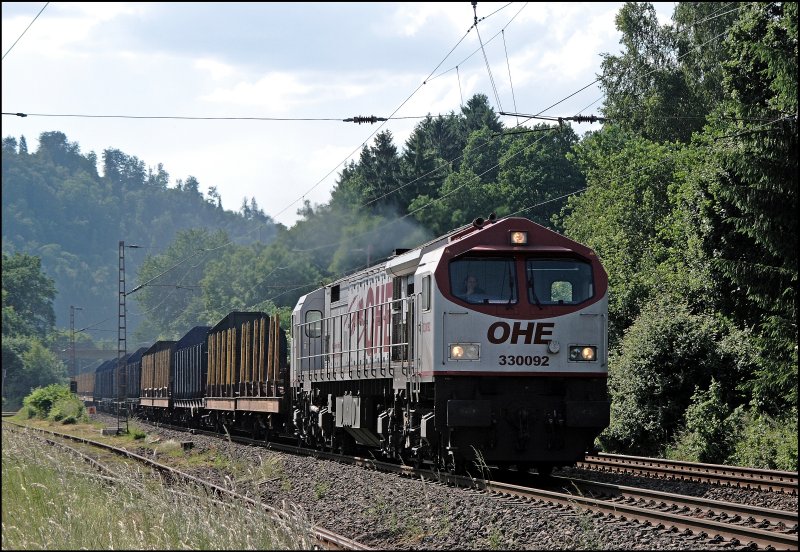 33092 brummt mit einem leeren Holzzug von Niedergröne/Stendal Richtung Finnentrop. Ökologisch sicher nicht sinnvoll aber dennoch lohnt es sich scheinbar quer durch Deutschland mit Diesel zufahren.....(05.06.2008)