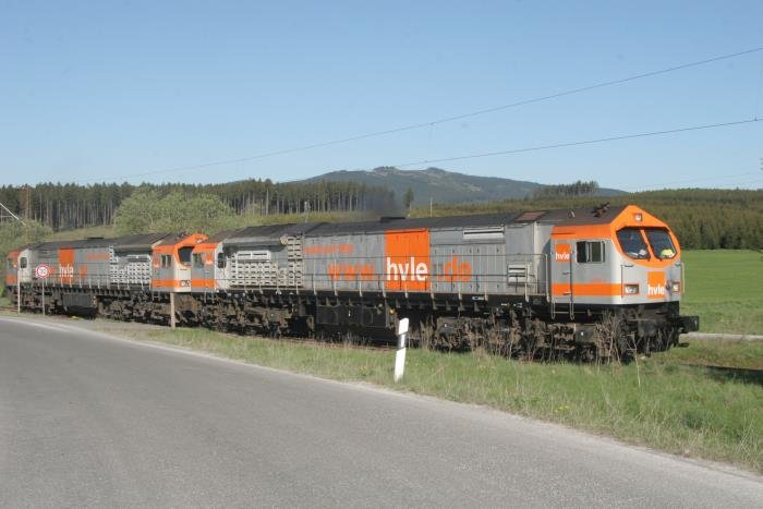 Nachdem V330.1 und V330.2 einen leeren Kalkschotterzug zum Kalkwerk Hornberg brachten, zieht der erste Serien-Tiger die jüngere Schwester nach Elbingerode hoch; 10.05.2008 André Breutel