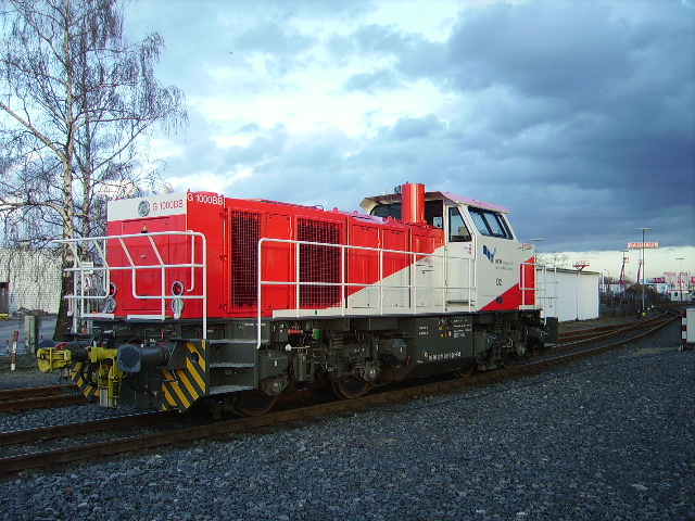 Übergabefahrt am 20.06.2008 der Kreisbahn Siegen-Wittgenstein (KSW) in Herdorf, mit der G 1000 BB Vossloh Locomotives Leihlok (1001322), vom Gleis der KSW aufs DB Gleis (KBS 462), Richtung Betzdorf. Armin Schwarz